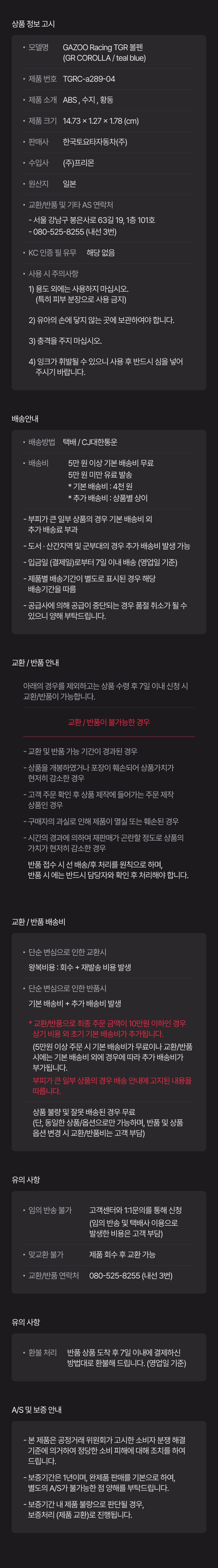 GAZOO Racing TGR 볼펜 (GR COROLLA / TEAL BLUE)